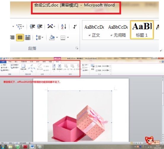 office2010增加了这么多的实用的新功能,为我们的工作带来了很大的便捷,但是由于接触时间较短,很多新功能还不能熟练的运用,而且网上共享的office文档大多还是2003版本的,所以在使用的过程中还发现了一个小问题,就是我们在打开用之前版本编辑的office文档时,在标题栏的位置会出现一个兼容模式的字样,在兼容模式下我们不能使用office2010的这些新增功能,本人曾经就被困扰过很久,想去掉图片背景的时候,愣是找不到去除背景的工具按钮,而且屏幕截图的按钮也呈灰色显示。