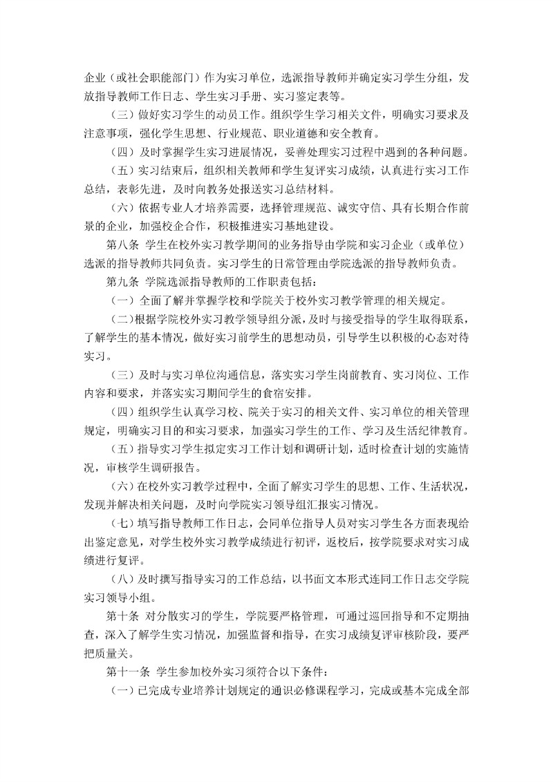 啪啪啦 校外实习教学管理办法