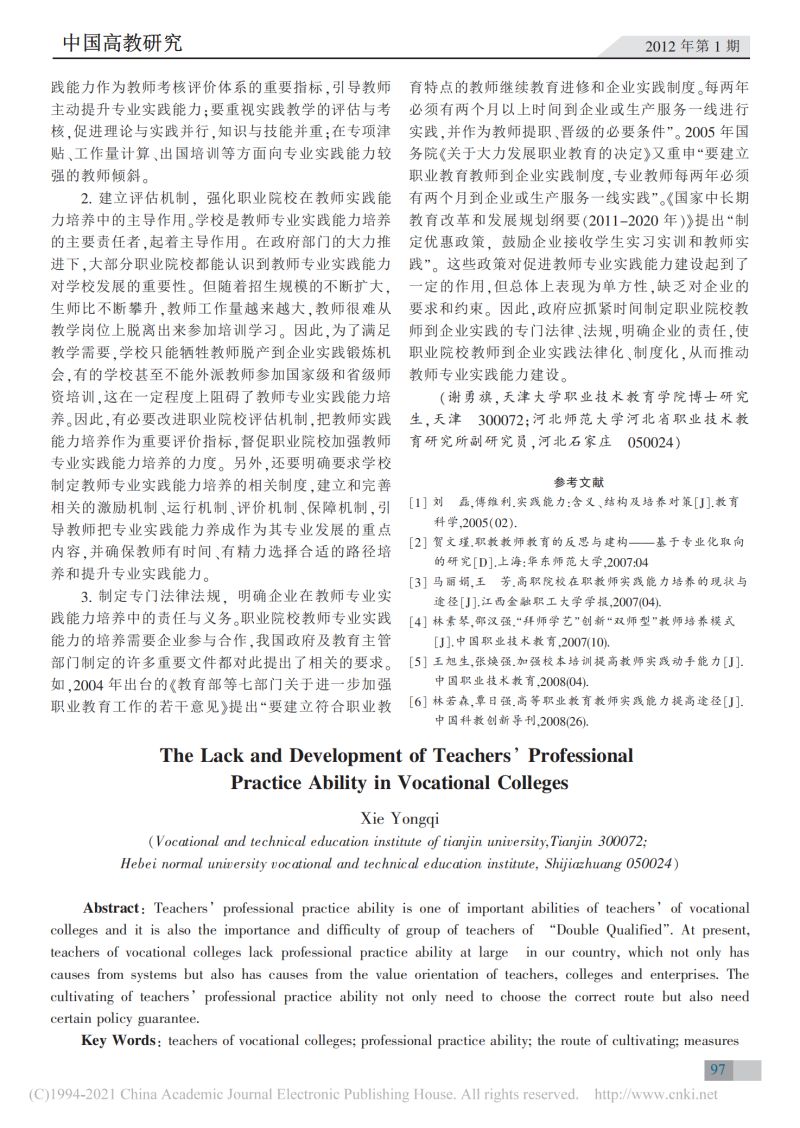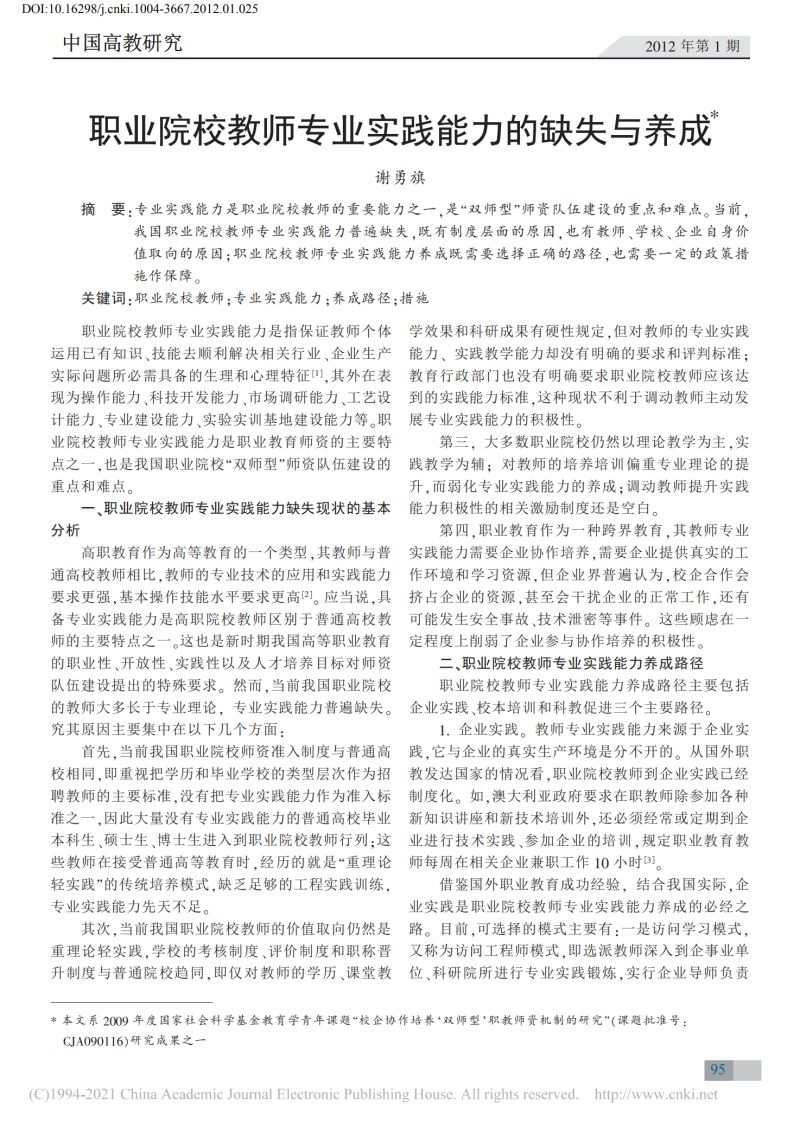 职业院校教师专业实践能力的缺失与养成