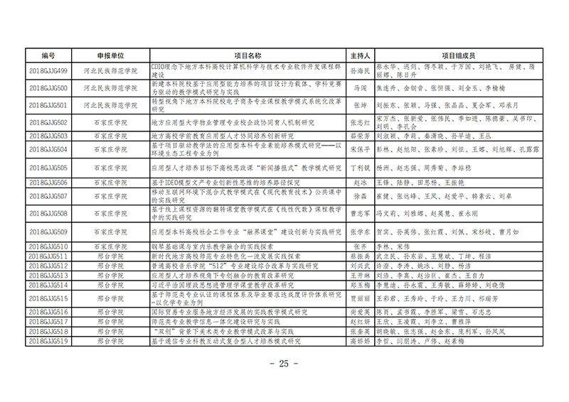 课题8-9-2018--2019年度河北省高等教育教学改革与实践项目名单的通知
